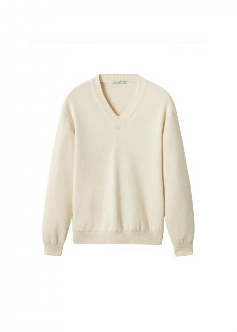 Hombre Jersey algodón cuello pico Blanco Marfil | Jerséis y cárdigans Mango