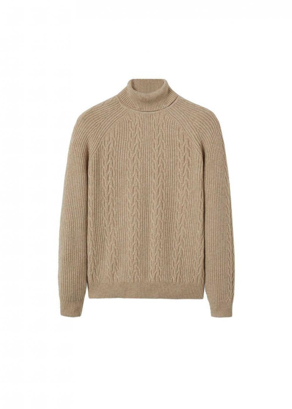 Hombre Jersey cuello alto trenzado Beige | Jerséis y cárdigans Mango