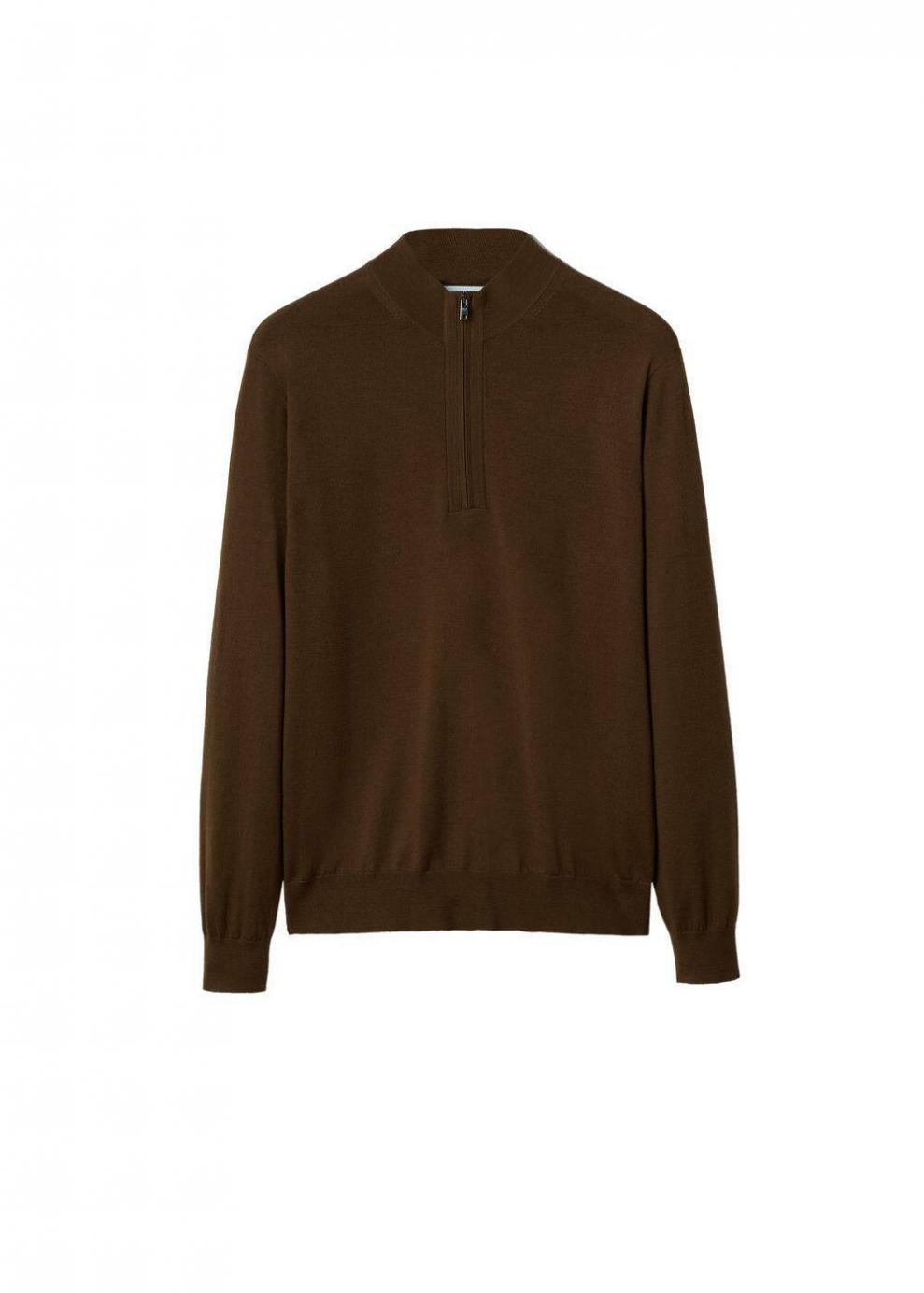 Hombre Jersey lana cuello cremallera Marrón Tabaco | Jerséis y cárdigans Mango