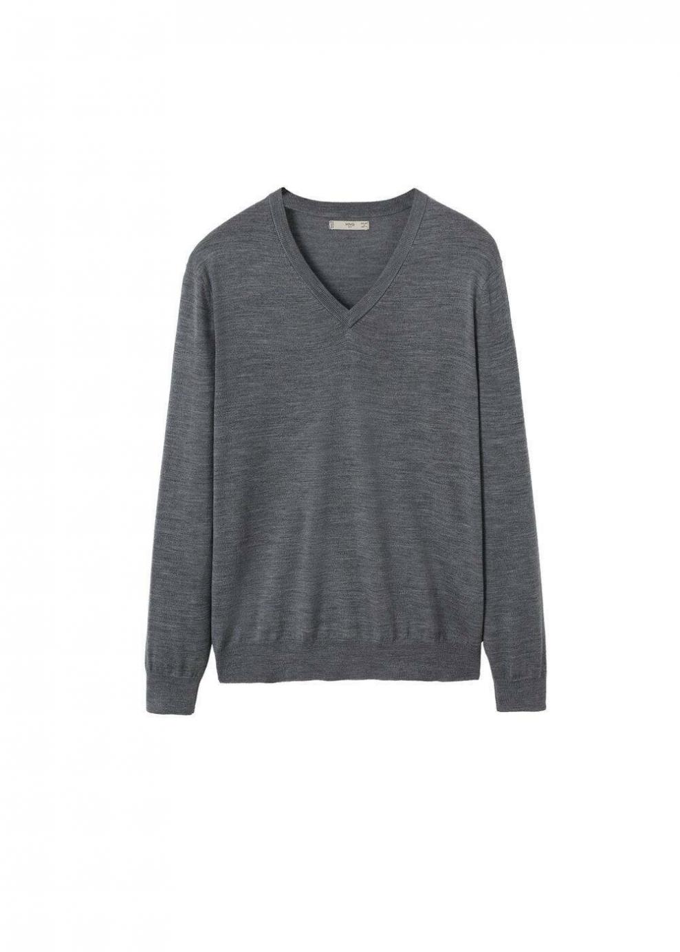 Hombre Jersey lana cuello pico Gris | Jerséis y cárdigans Mango