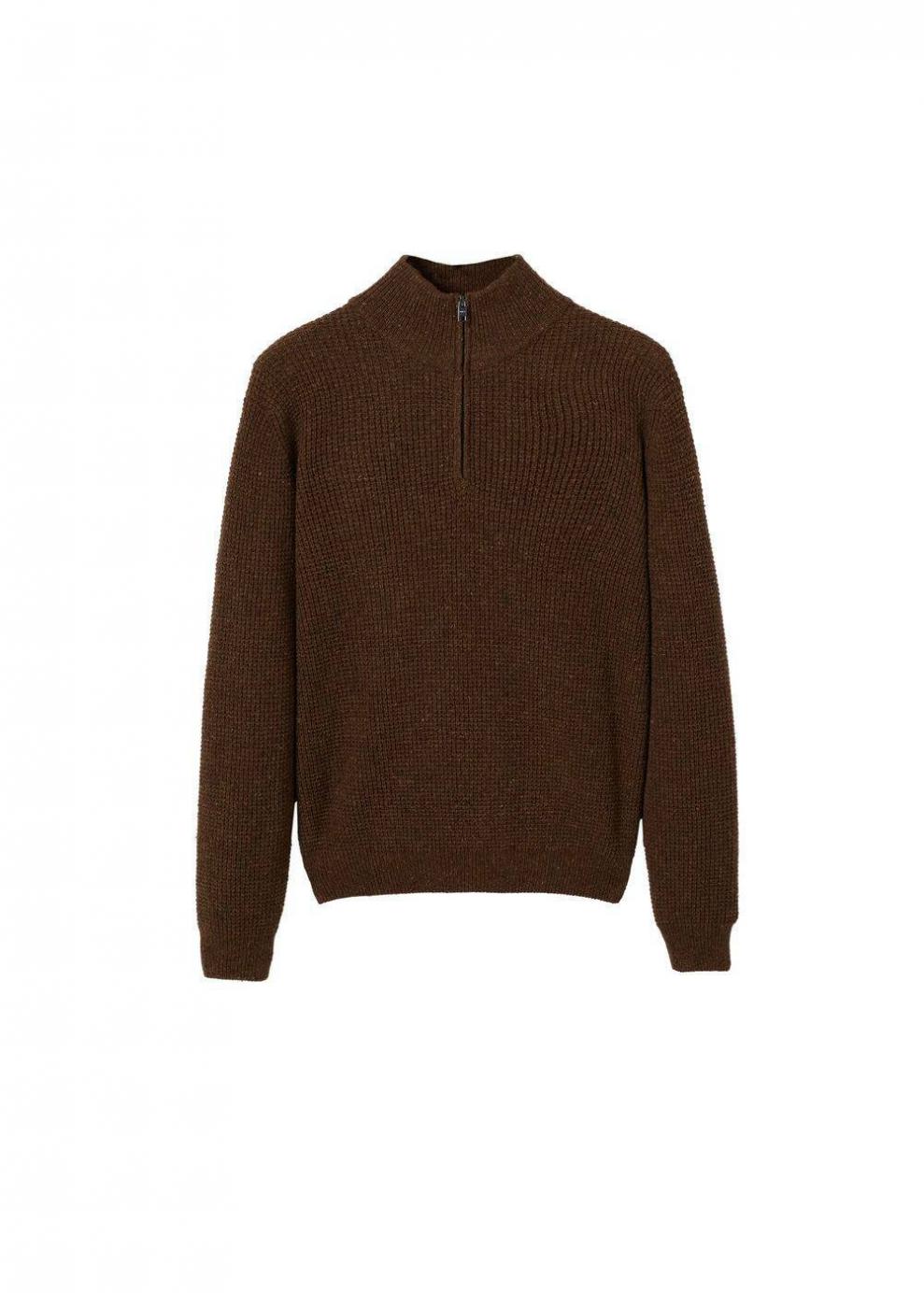 Hombre Jersey lana cuello cremallera Marrón | Jerséis y cárdigans Mango
