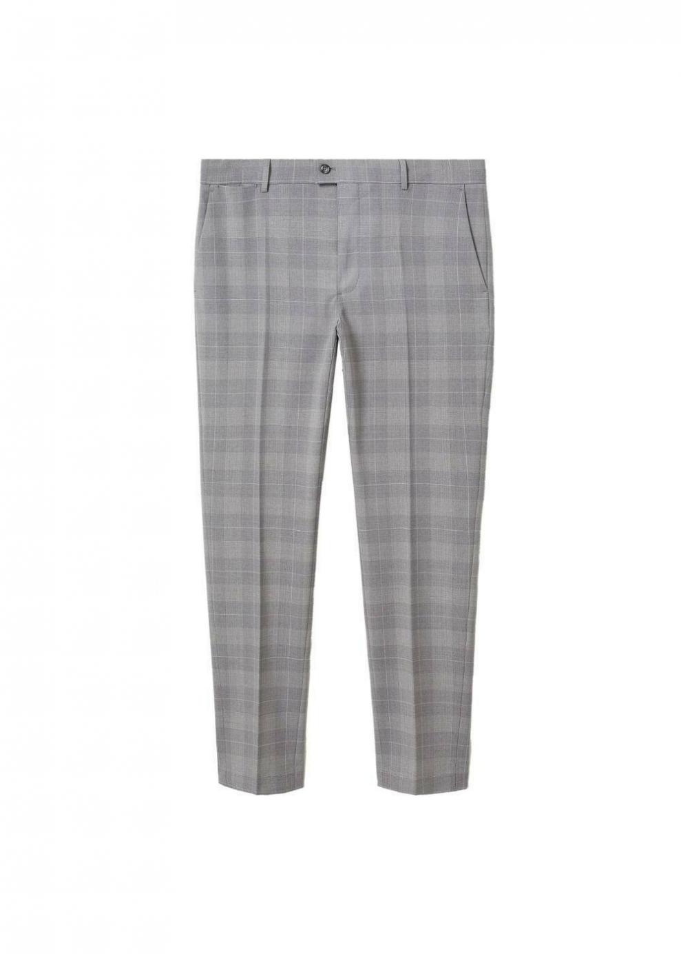 Hombre Pantalón traje slim fit lana cuadros Gris | Pantalones Mango