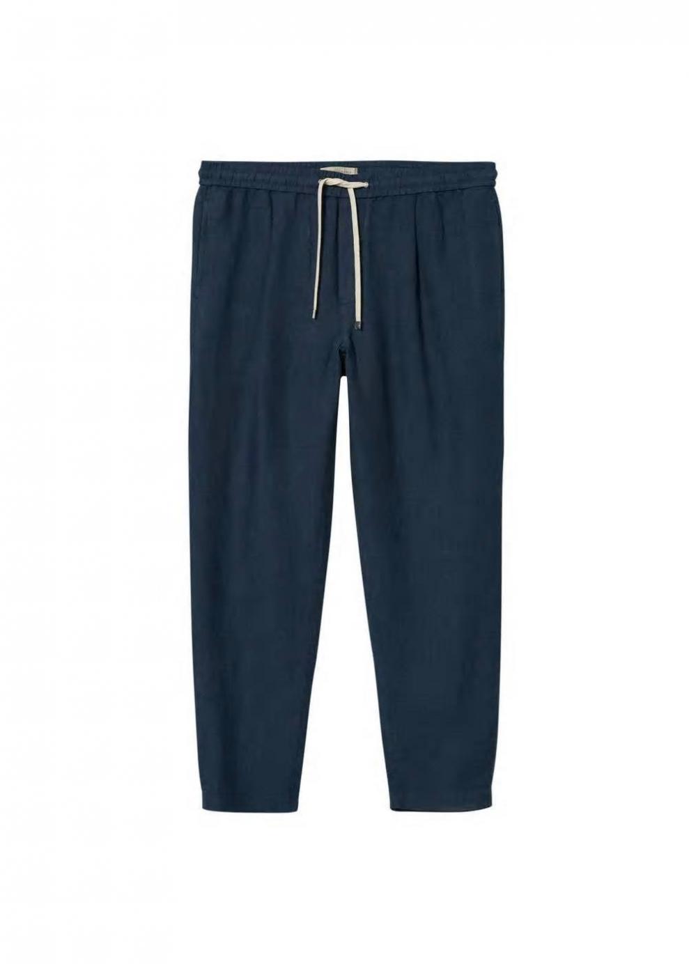 Hombre Pantalón jogger lino pinzas Azul | Pantalones Mango