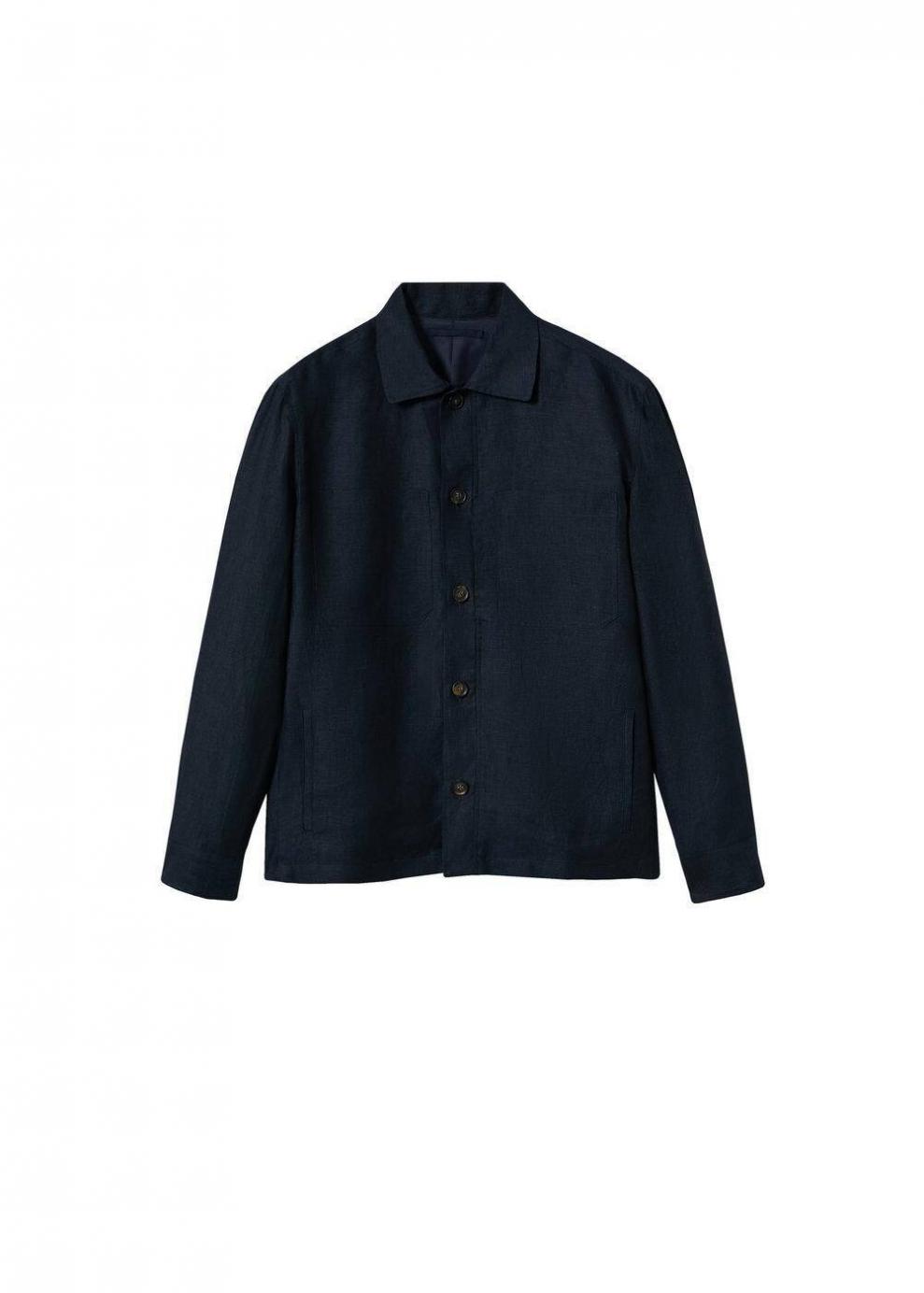 Hombre Sobrecamisa 100% lino bolsillos Azul Marino Oscuro | Sobrecamisas Mango