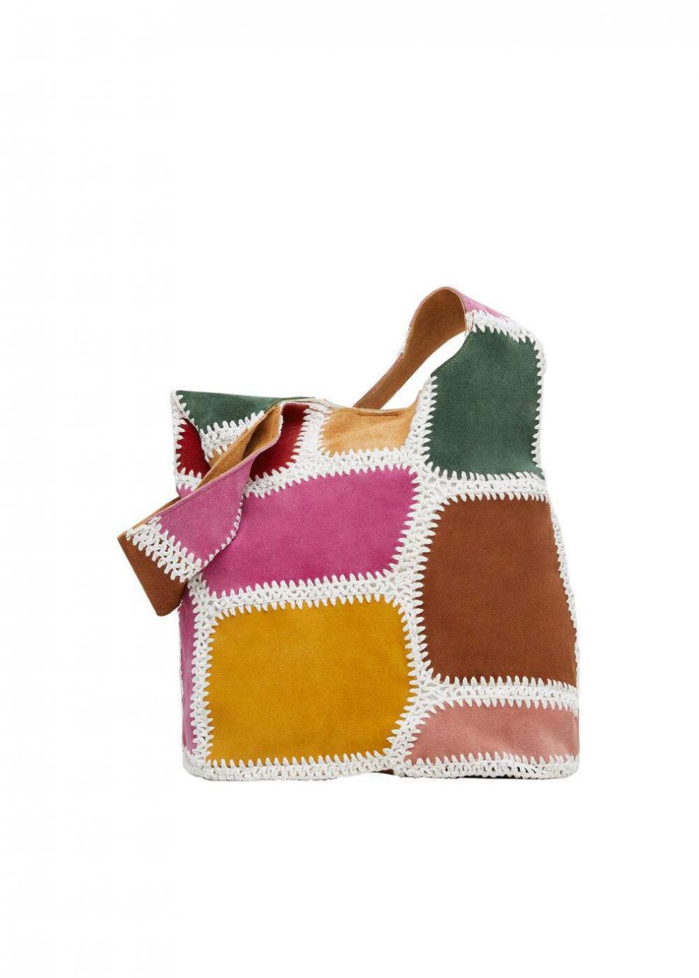 Mujer Bolso piel patchwork Beige | Bolso Mango