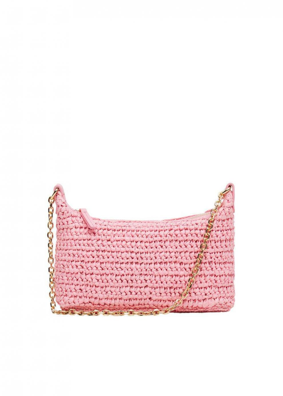 Mujer Bolso hombro rafia Rosa | Bolso Mango