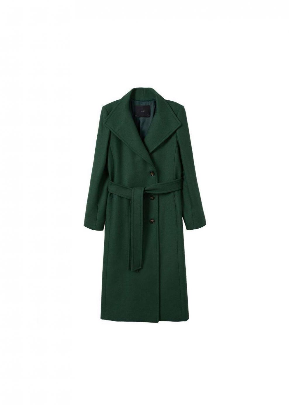 Mujer Abrigo lana cinturón Verde | Abrigos Mango
