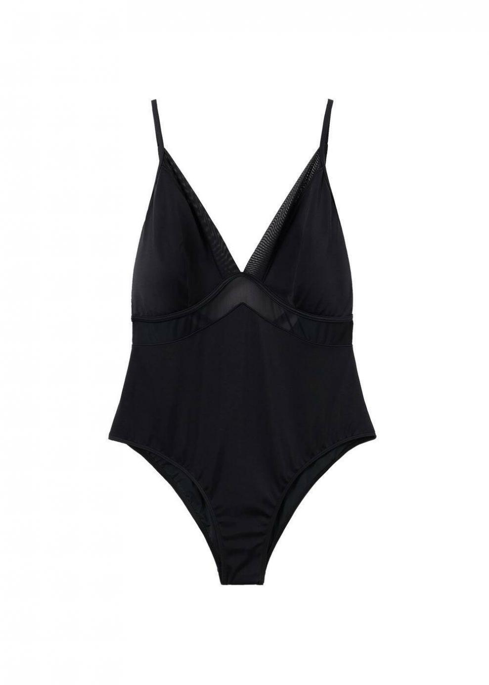 Mujer Bañador paneles semitransparentes Negro | Bikinis y bañadores Mango