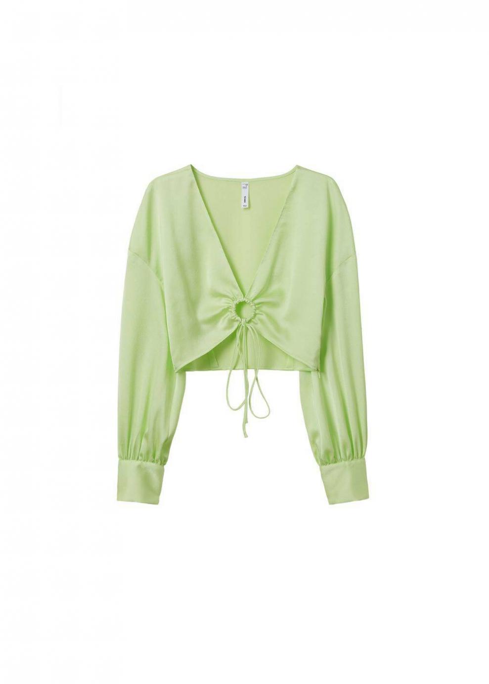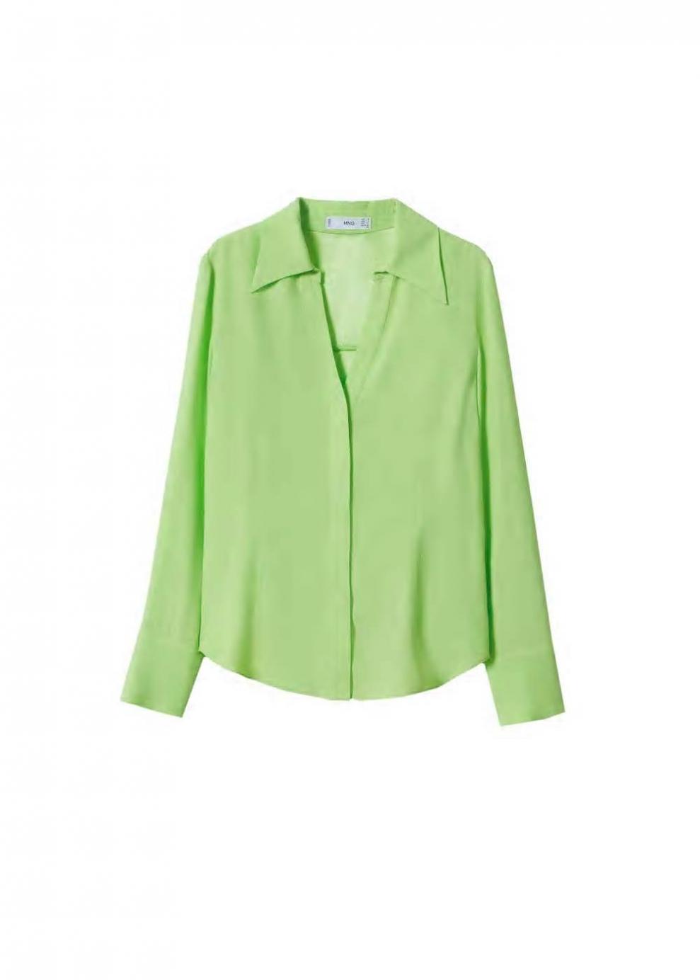 Mujer Blusa satinada Verde Pastel | Camisas Mango