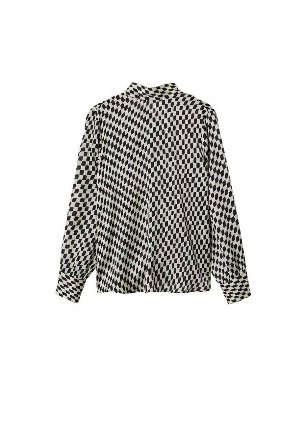 Mujer Camisa cuadros lazo Negro | Camisas Mango