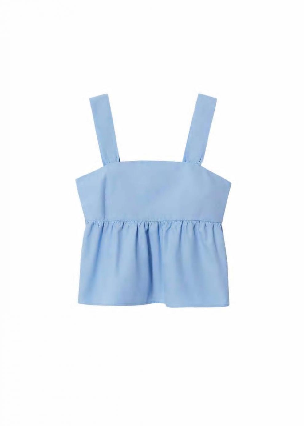 Mujer Top algodón volante Azul Celeste | Camisas Mango