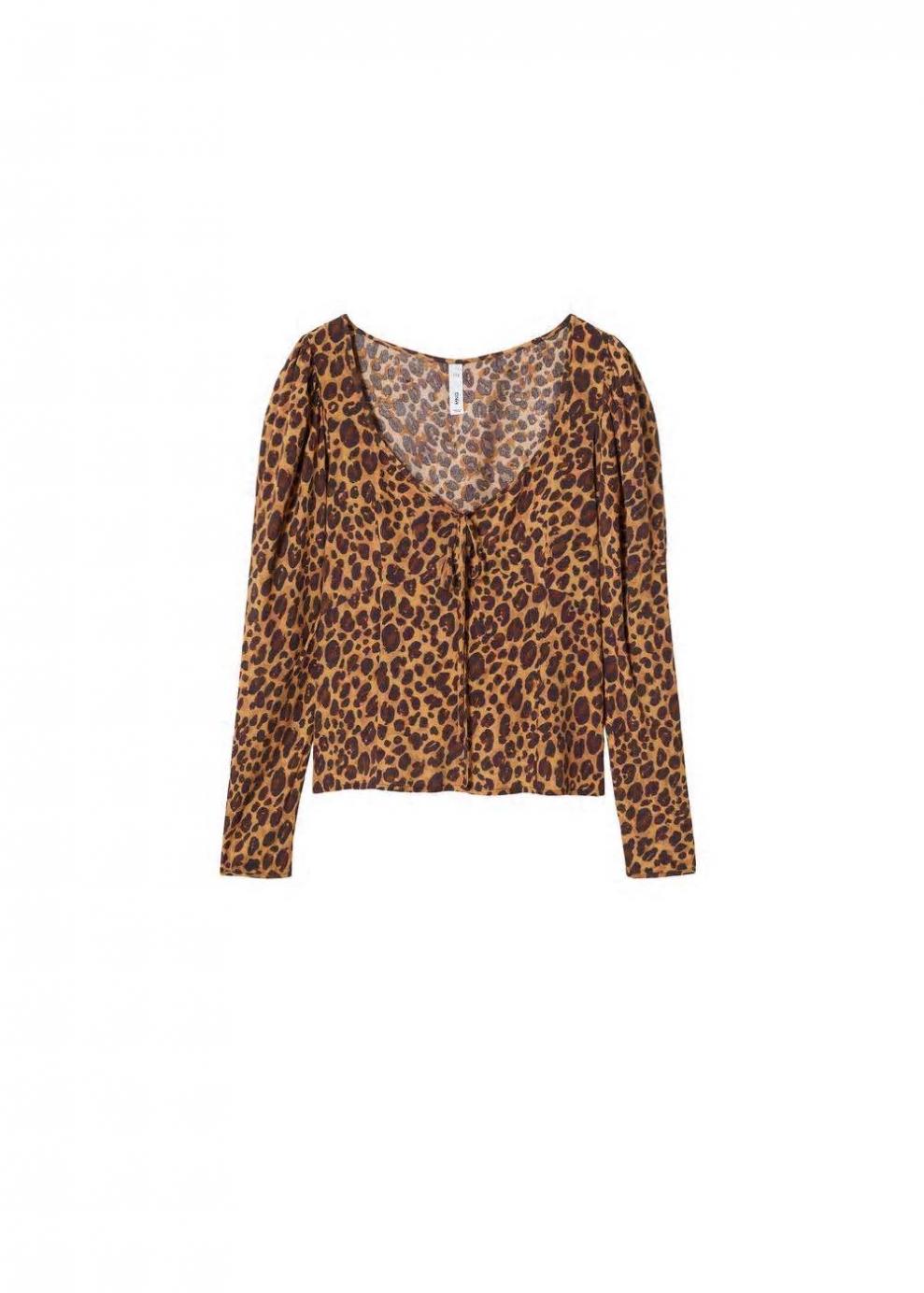 Mujer Blusa satinada estampada Marrón | Camisas Mango