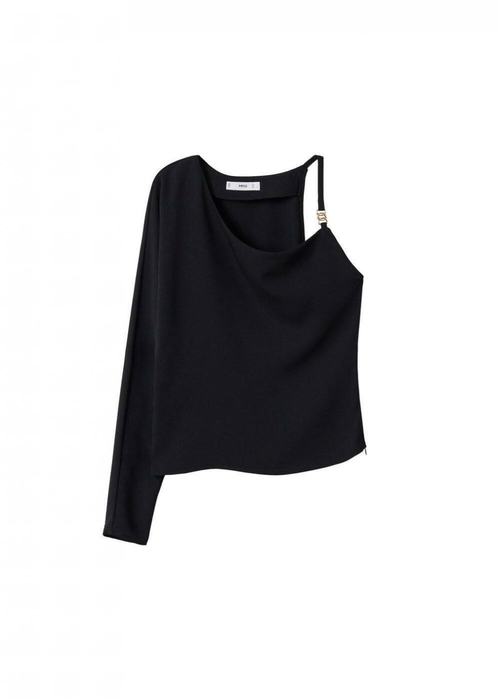 Mujer Blusa asimétrica apliques Negro | Camisas Mango