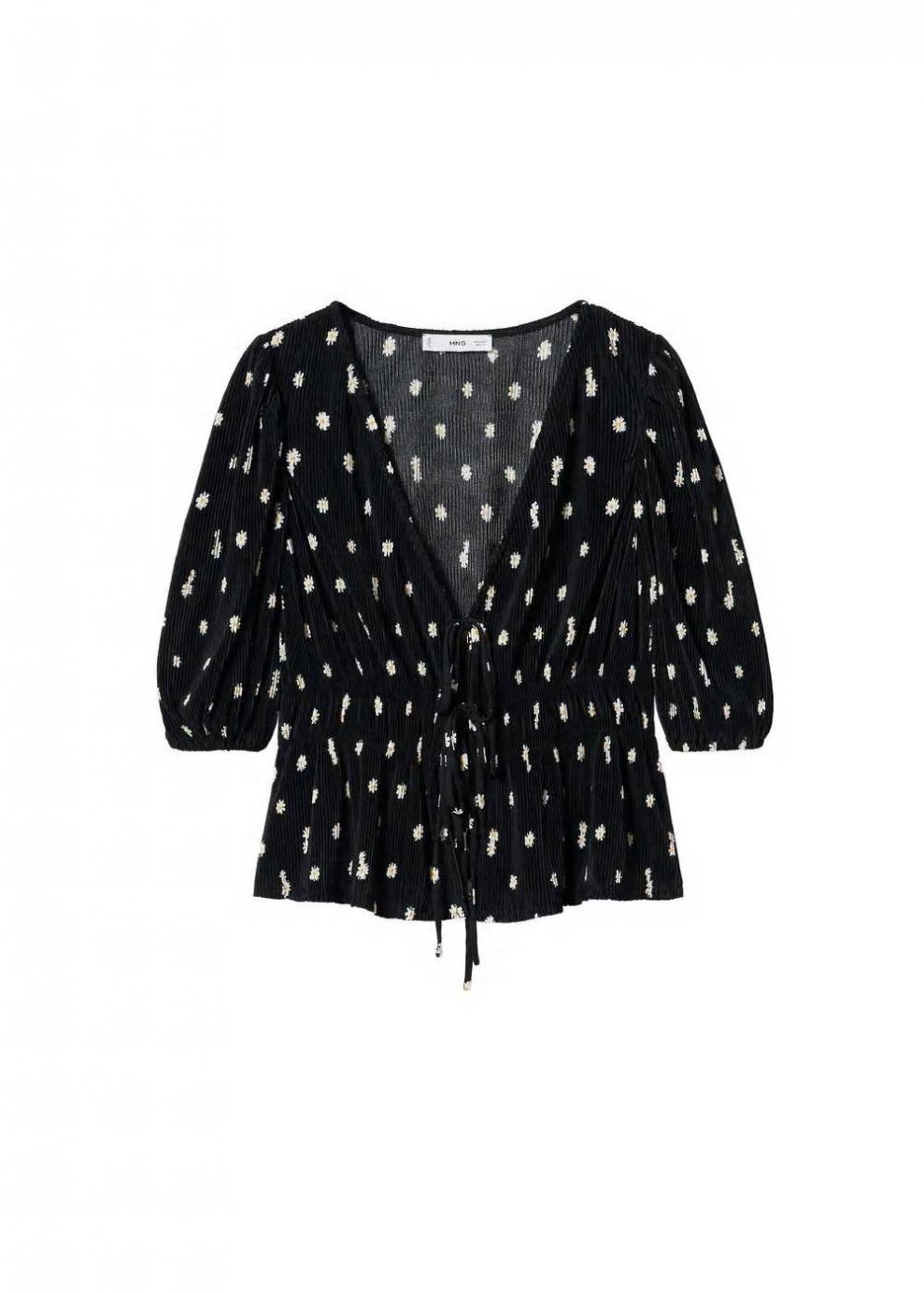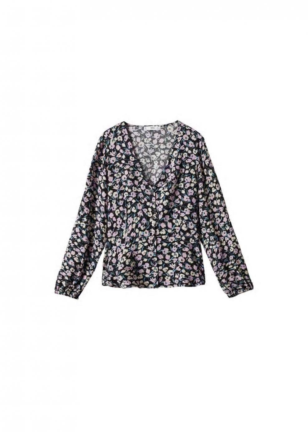 Mujer Blusa estampado flores Negro | Camisas Mango