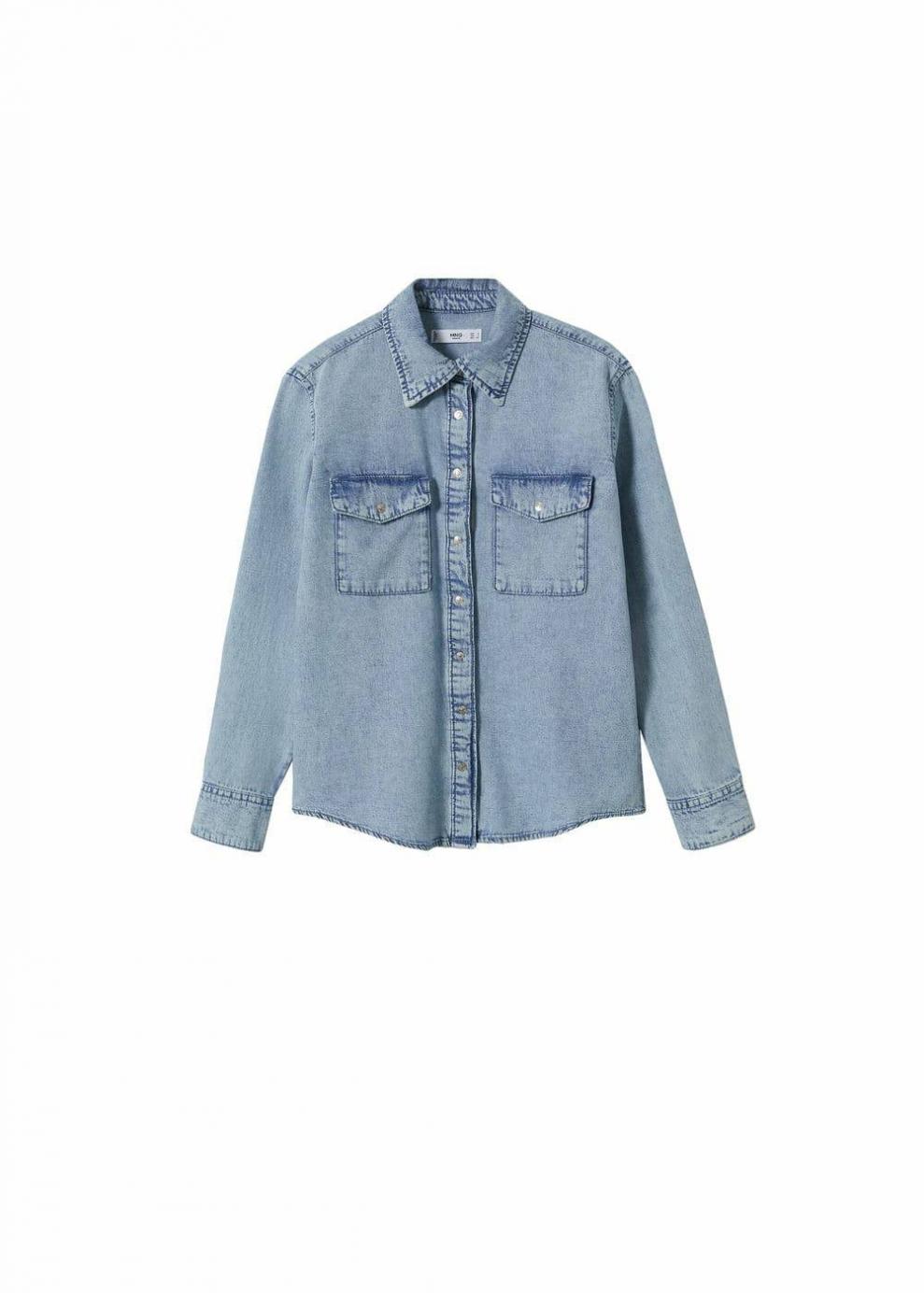 Mujer Camisa vaquera bolsillos Azul Medio | Camisas Mango