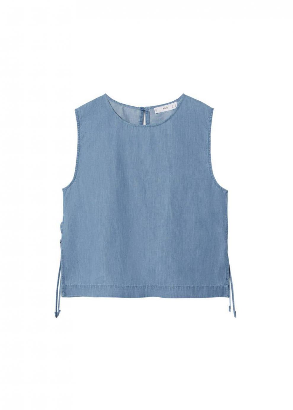 Mujer Top algodón lazo Azul Medio | Camisas Mango