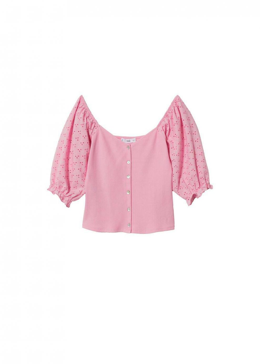 Mujer Camiseta manga bordada Rosa | Camisetas y tops Mango
