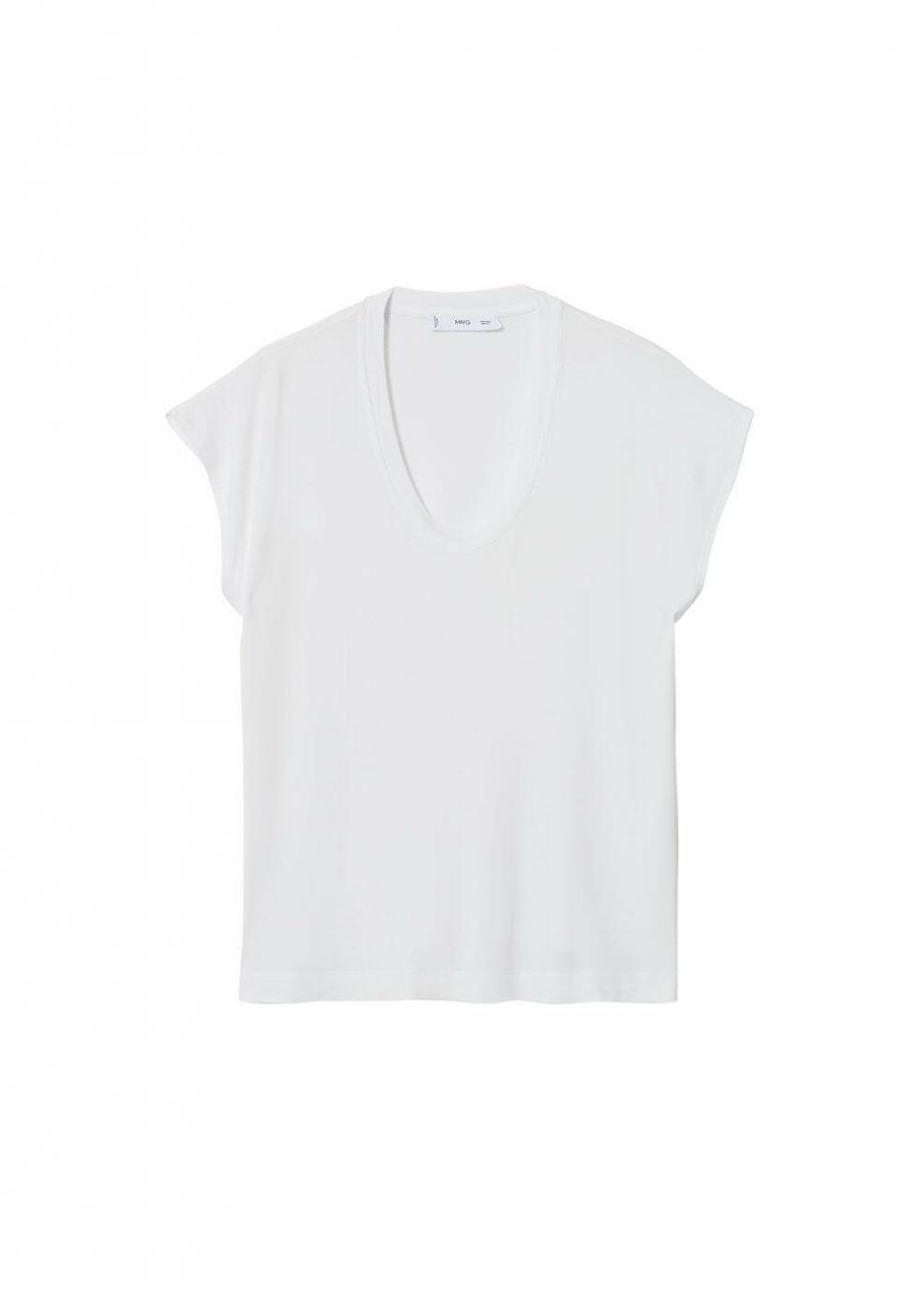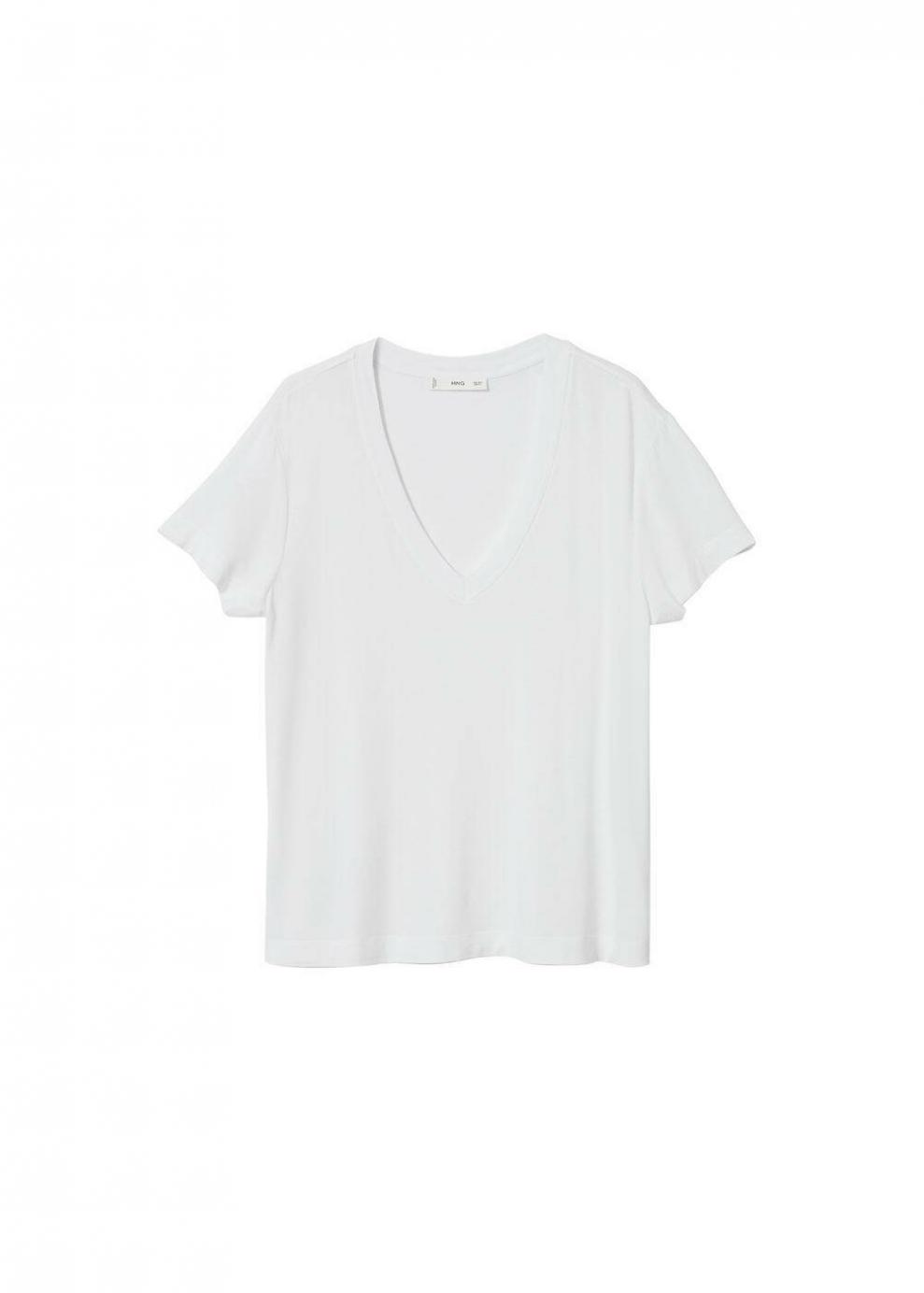 Mujer Camiseta fluida escote pico Blanco | Camisetas y tops Mango