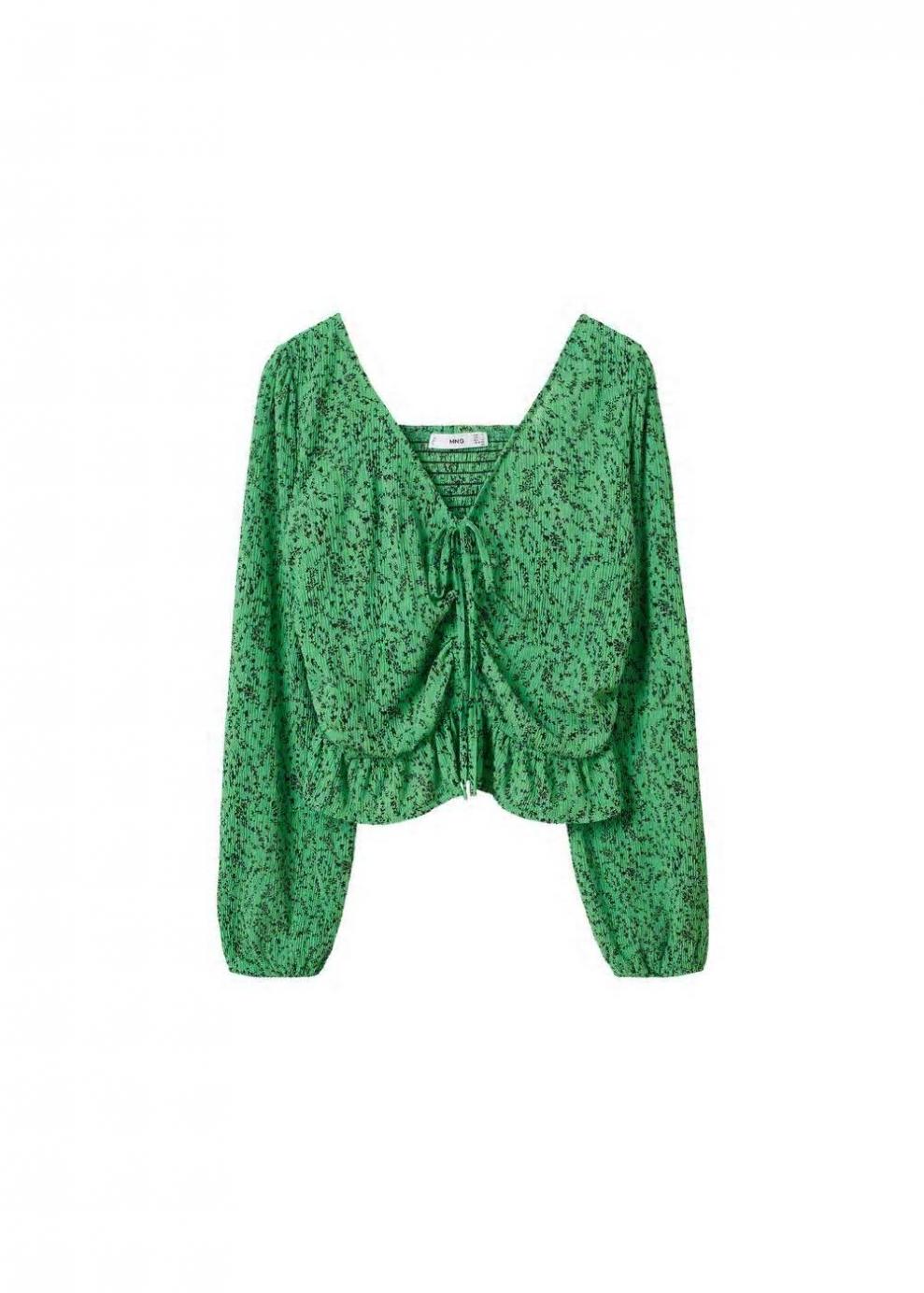 Mujer Camiseta fruncida estampada Verde | Camisetas y tops Mango