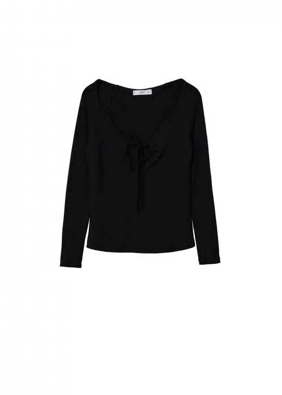 Mujer Camiseta manga larga abertura Negro | Camisetas y tops Mango