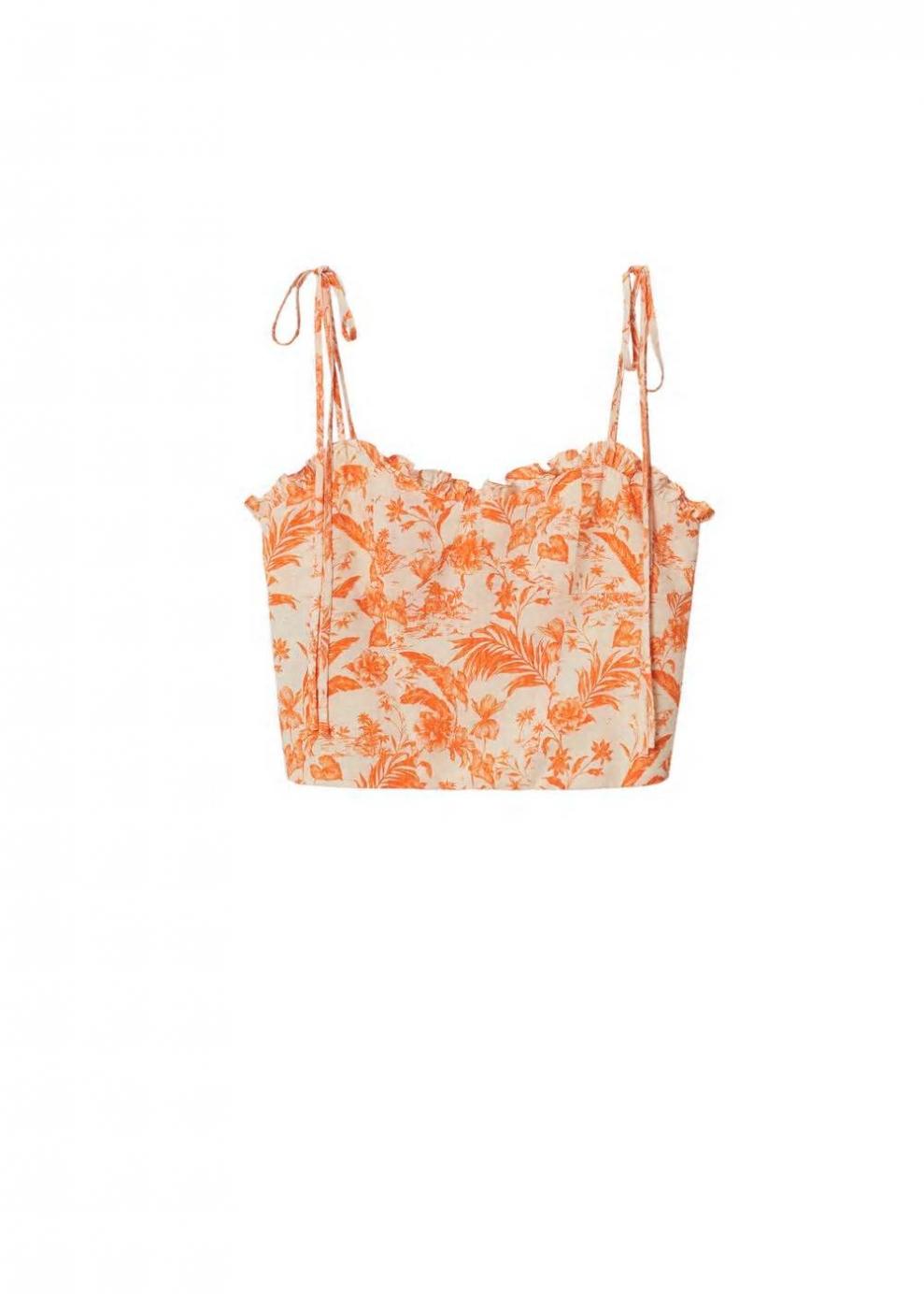 Mujer Top crop textura Marrón | Camisetas y tops Mango