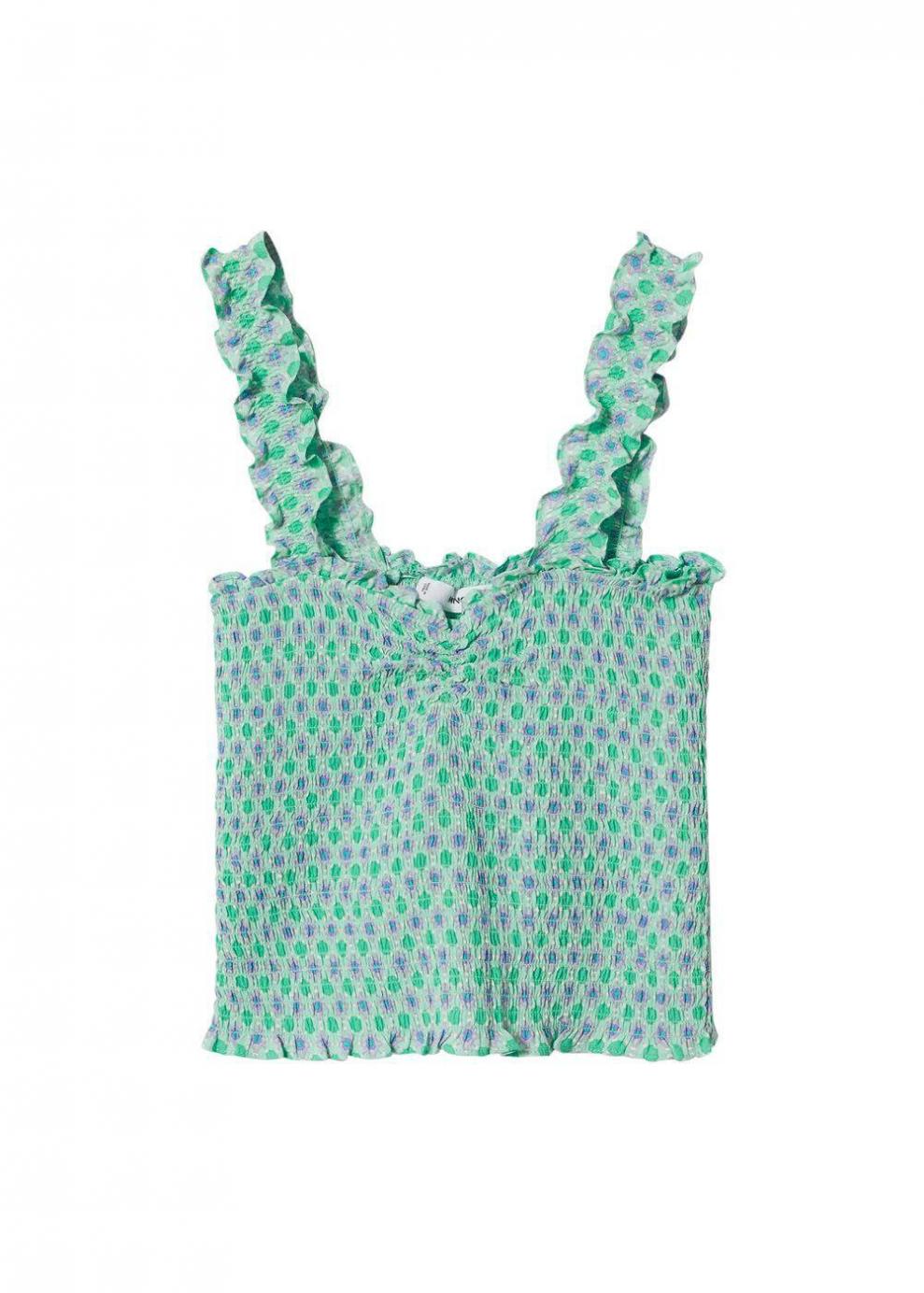 Mujer Top crop fruncido Verde Agua | Camisas Mango