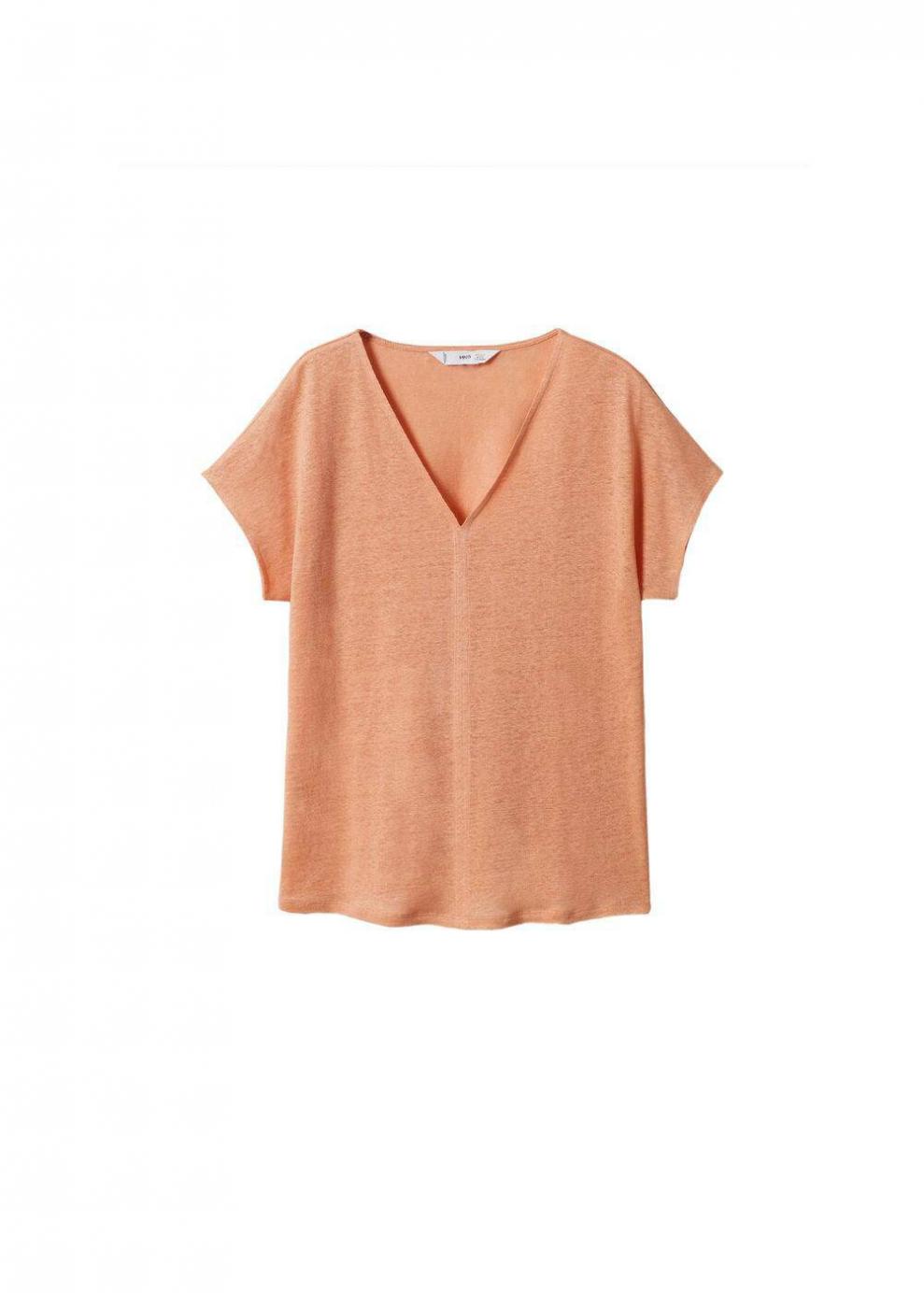 Mujer Camiseta 100% lino Rojo Coral | Camisetas y tops Mango