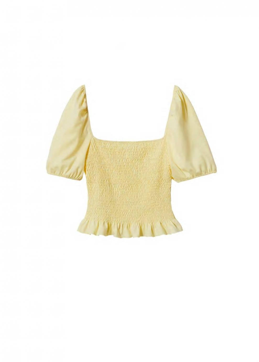 Mujer Camiseta algodón manga abullonada Amarillo Pastel | Camisetas y tops Mango