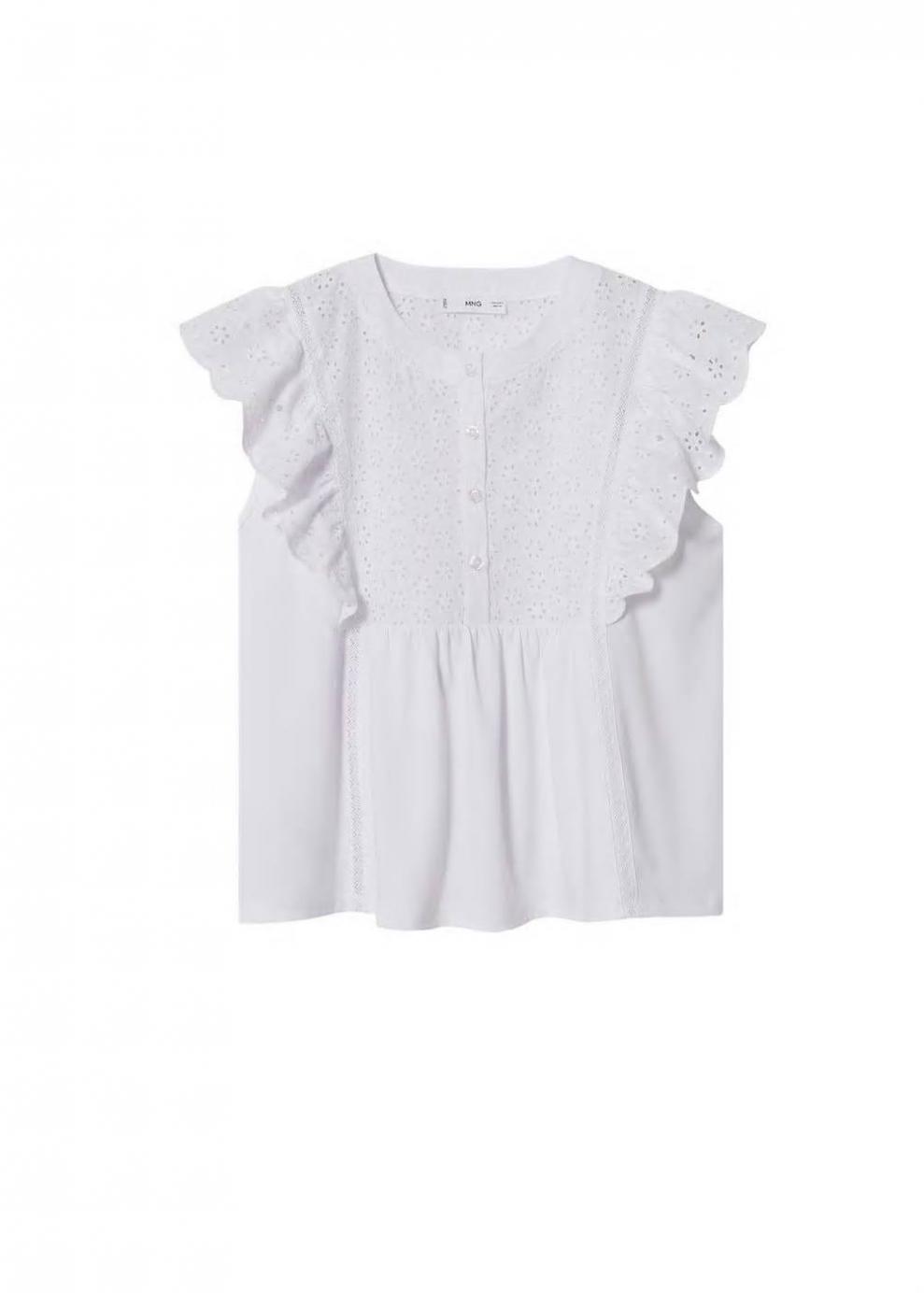 Mujer Camiseta punto calado Blanco | Camisetas y tops Mango