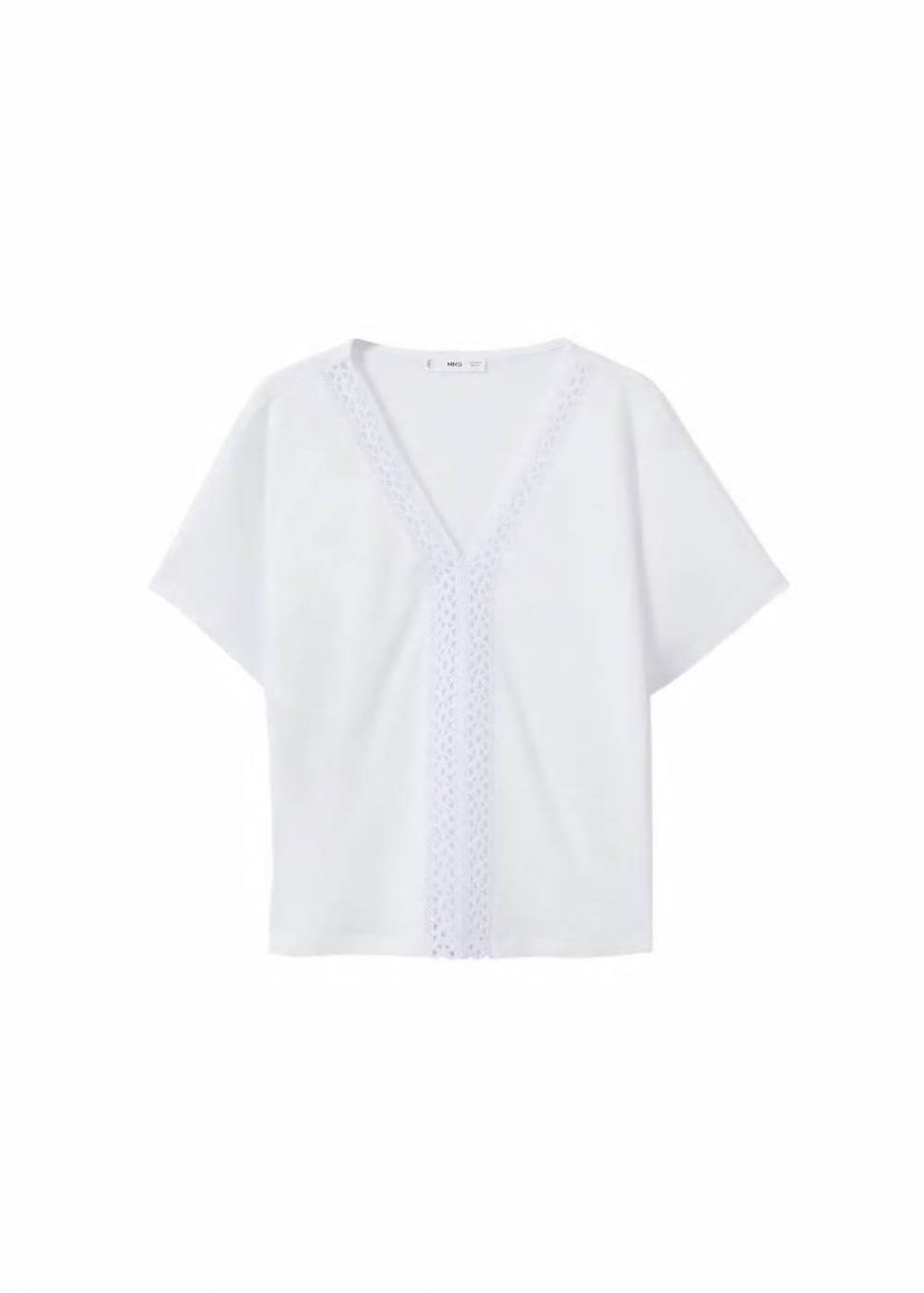 Mujer Camiseta lino crochet Blanco | Camisetas y tops Mango