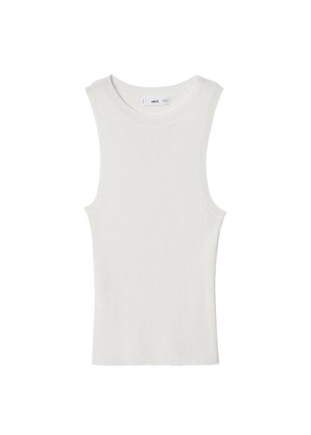 Mujer Top punto canalé Blanco Roto | Camisetas y tops Mango