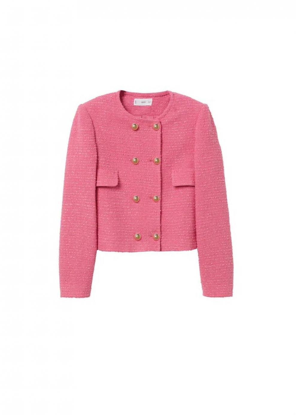 Mujer Chaqueta tweed doble botonadura Rosa Pastel | Chaquetas y americanas Mango