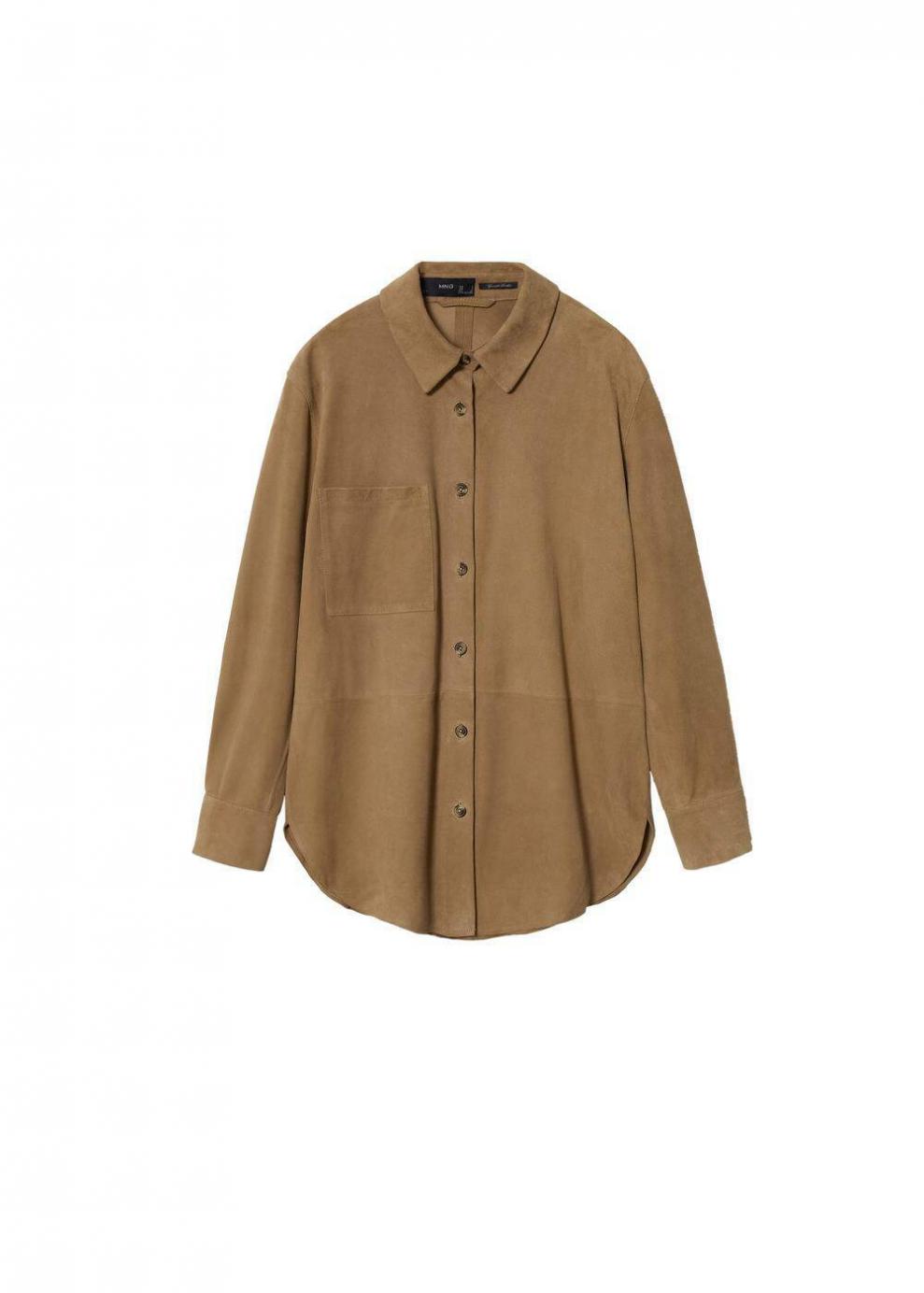 Mujer Camisa oversize piel Marrón | Chaquetas y americanas Mango