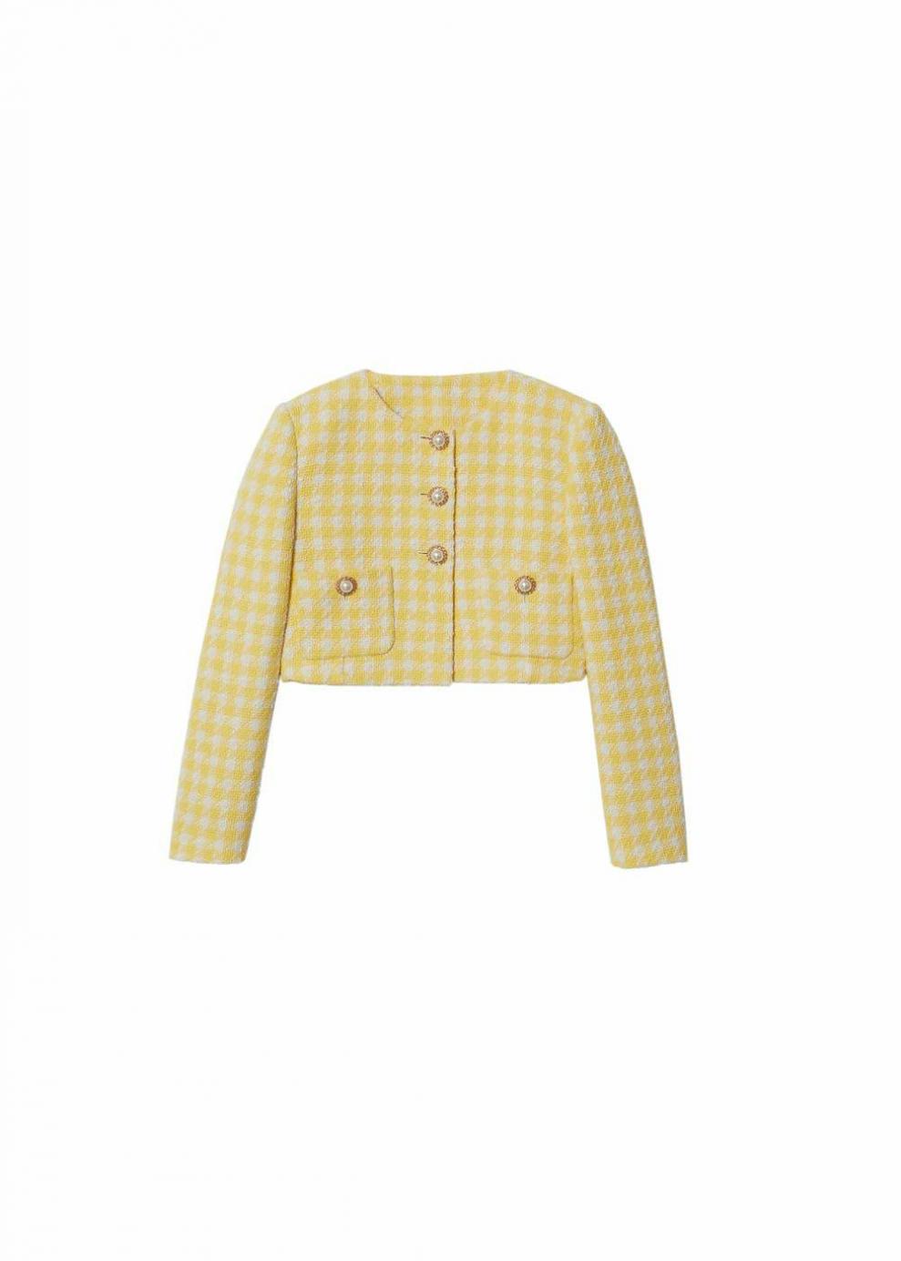 Mujer Chaqueta tweed crop Amarillo Pastel | Chaquetas y americanas Mango