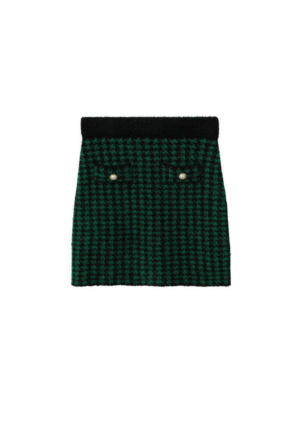 Mujer Minifalda pata de gallo Verde | Faldas Mango