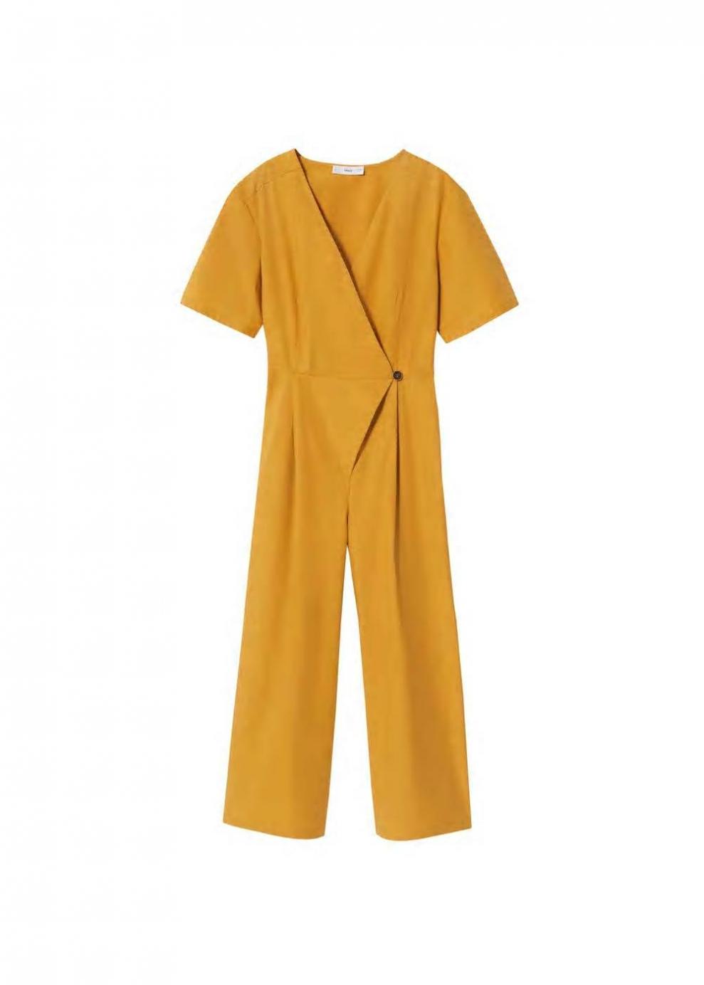 Mujer Mono algodón cruzado Mostaza | Vestidos y monos Mango