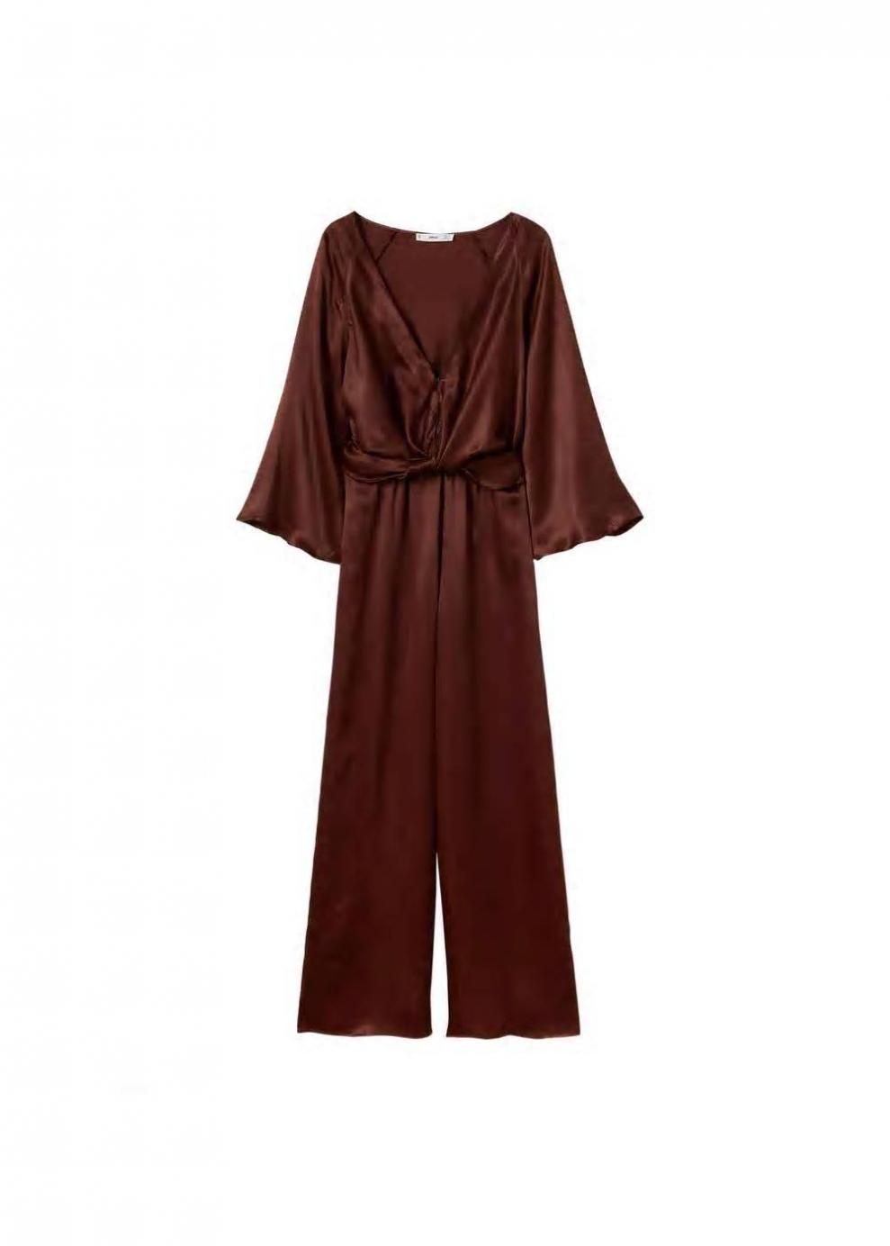 Mujer Mono satinado cinturón Marrón | Vestidos y monos Mango