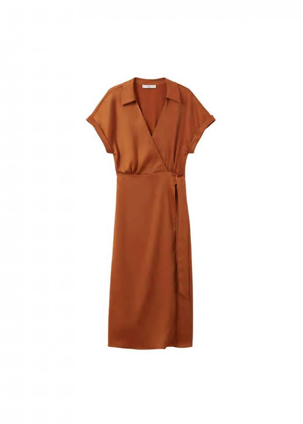 Mujer Vestido camisero satinado Caramelo | Vestidos y monos Mango