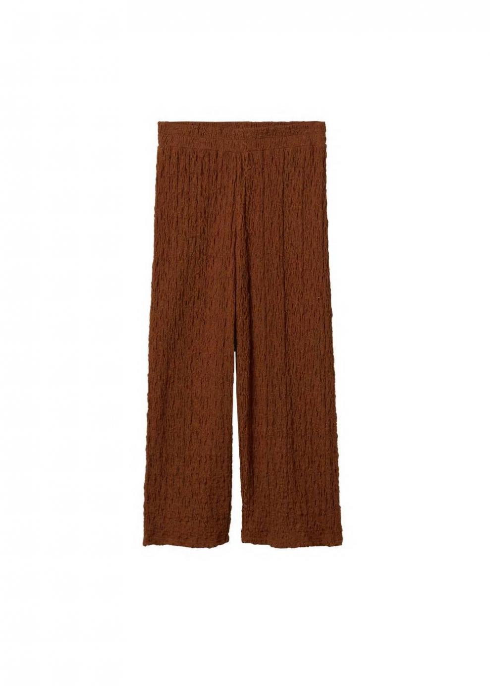 Mujer Pantalón algodón textura Marrón Tabaco | Pantalones Mango