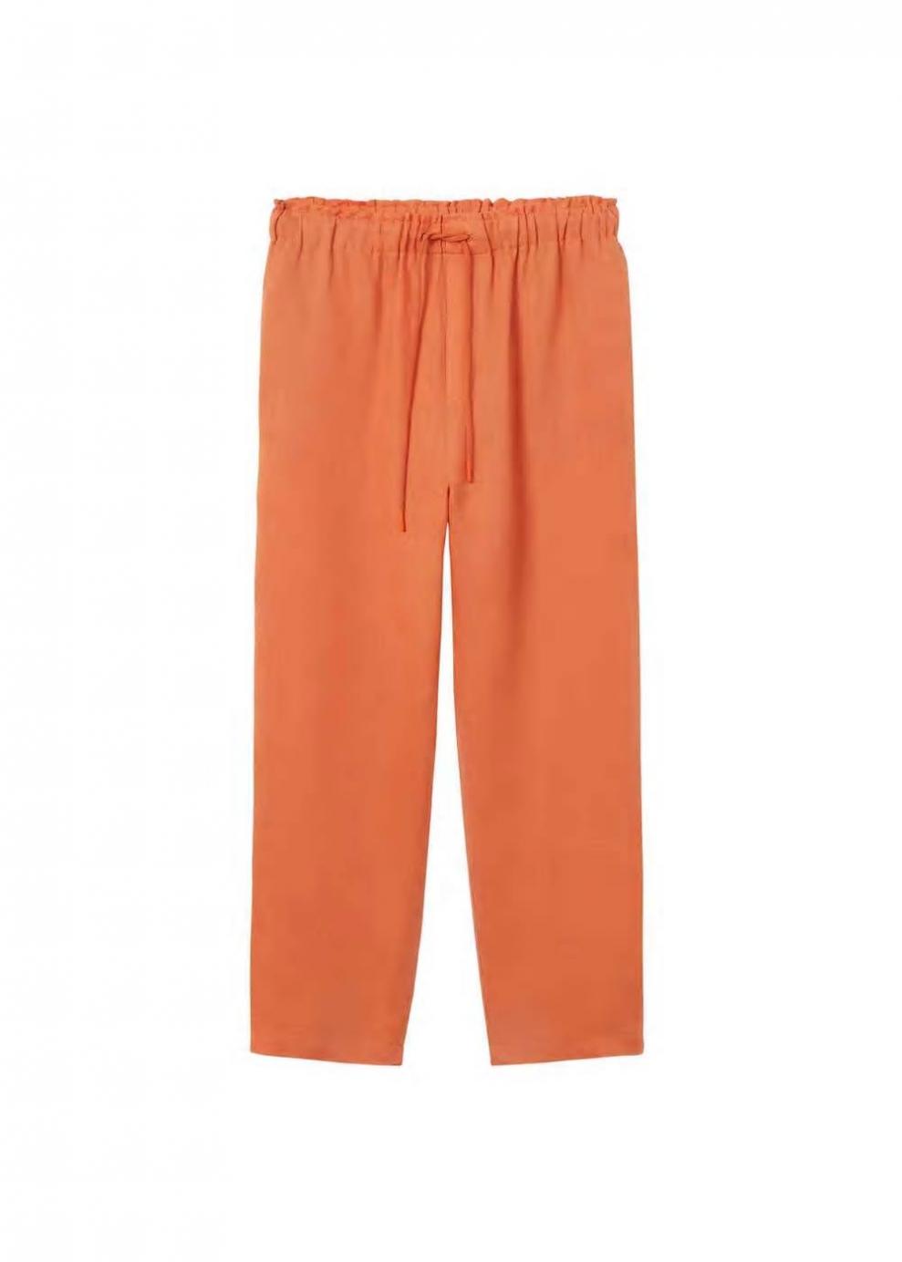 Mujer Pantalón 100% lino Mandarina | Pantalones Mango