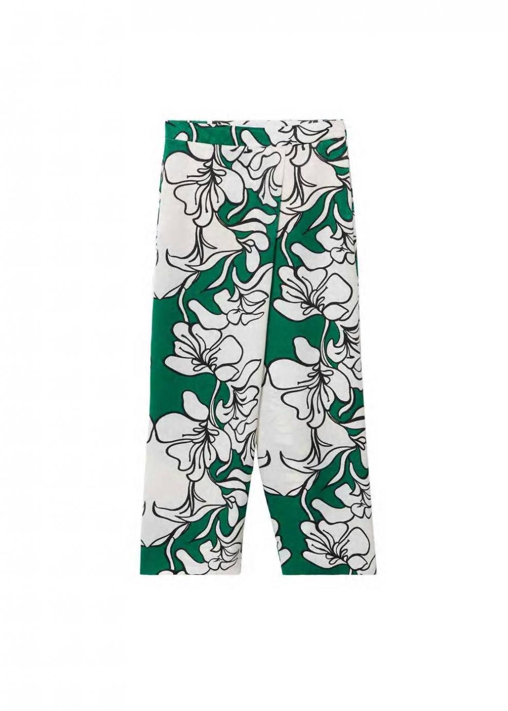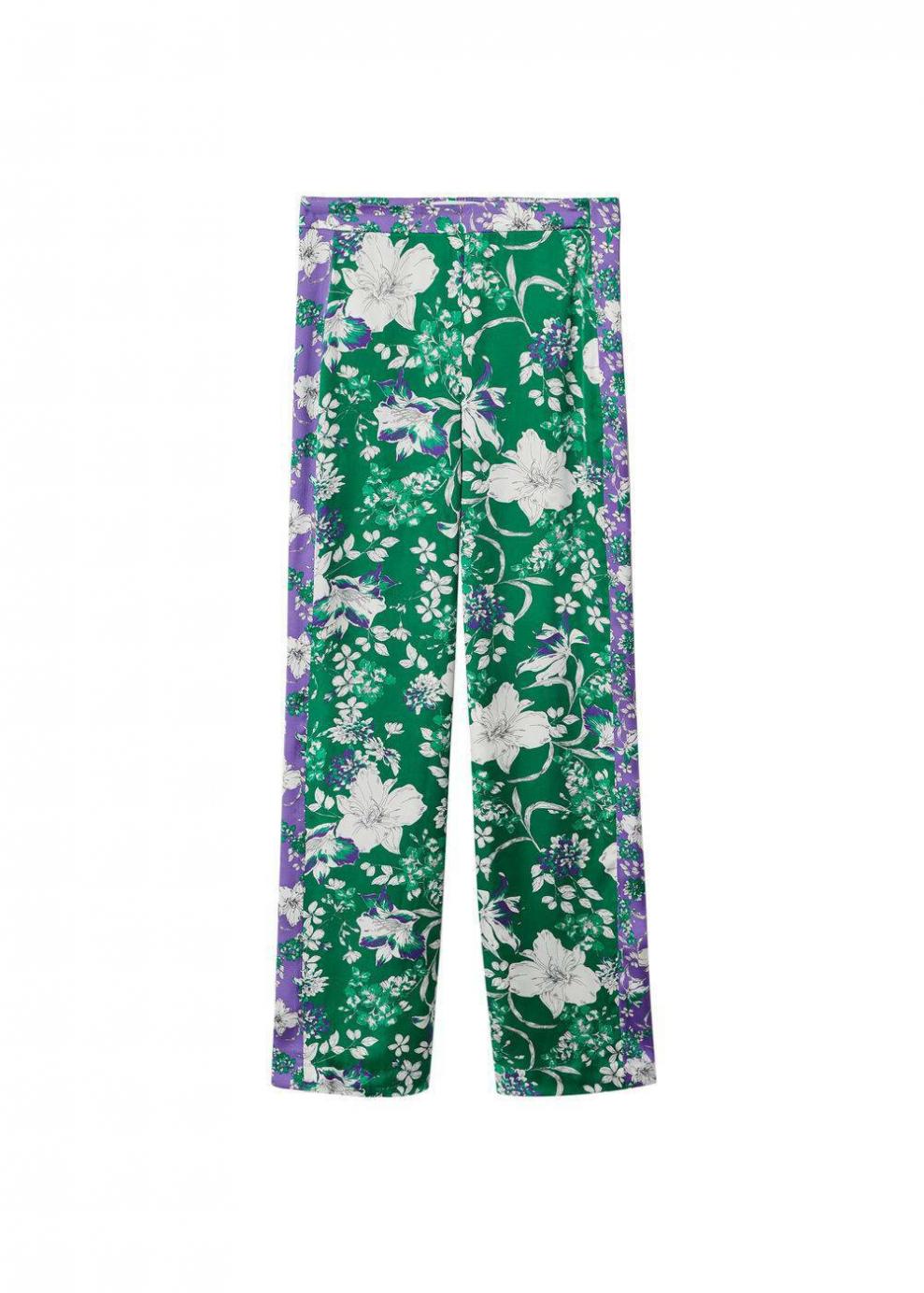 Mujer Pantalón estampado flores Verde | Pantalones Mango