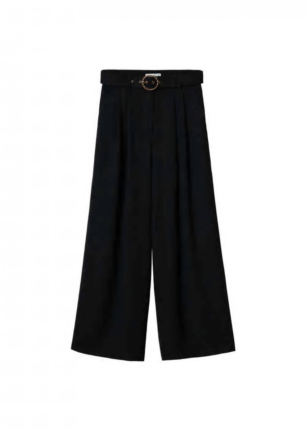Mujer Pantalón palazzo cinturón Negro | Pantalones Mango