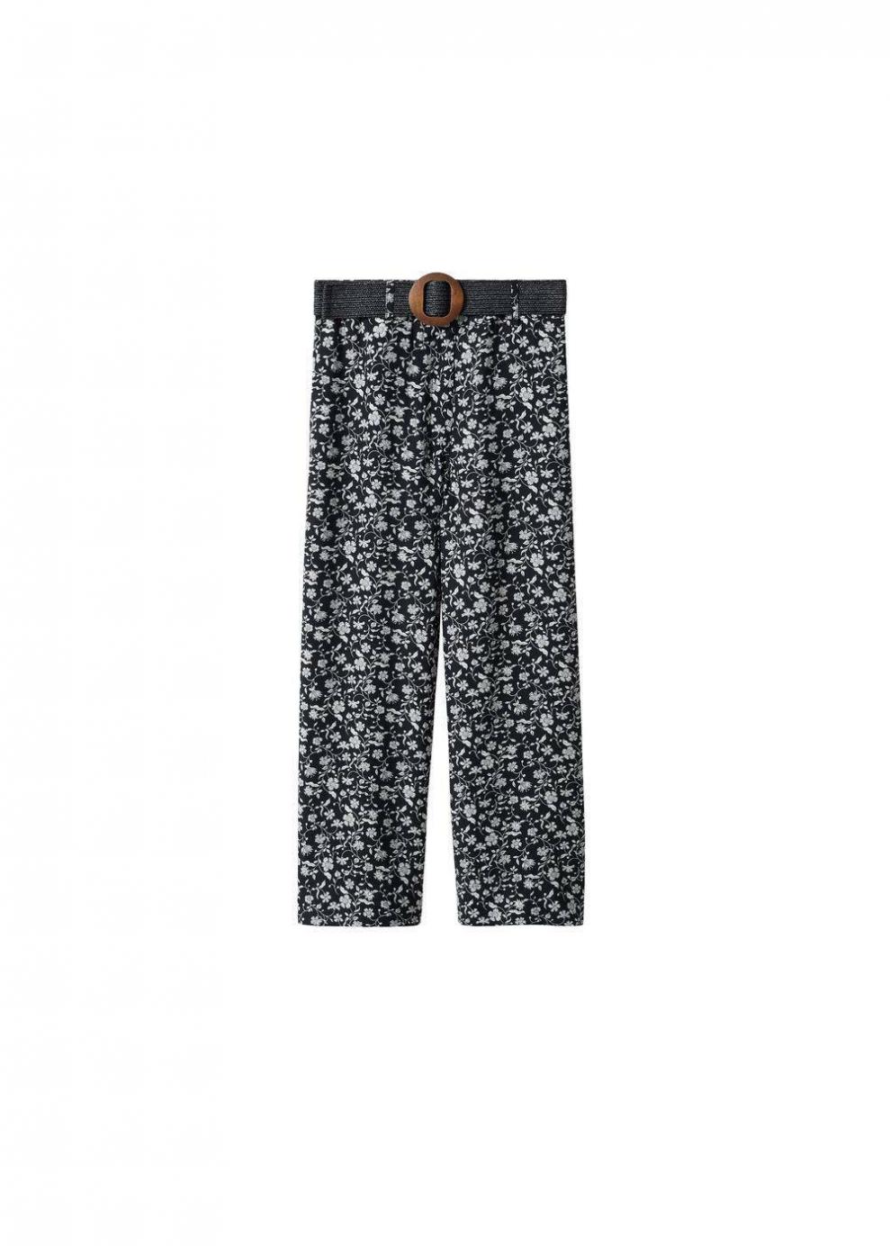 Mujer Pantalón fluido estampado Negro | Pantalones Mango