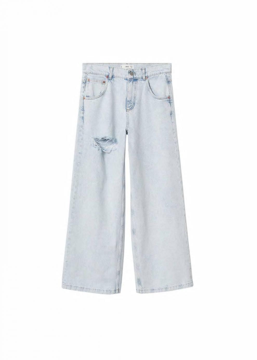 Mujer Jeans wideleg rotos decorativos Azul Bleach | Vaqueros Mango