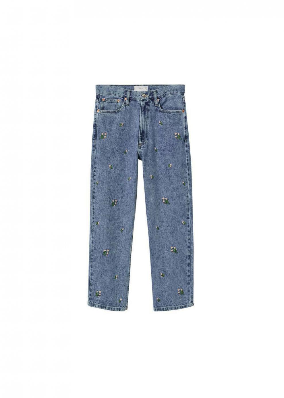 Mujer Jeans bordado floral Azul Medio | Vaqueros Mango