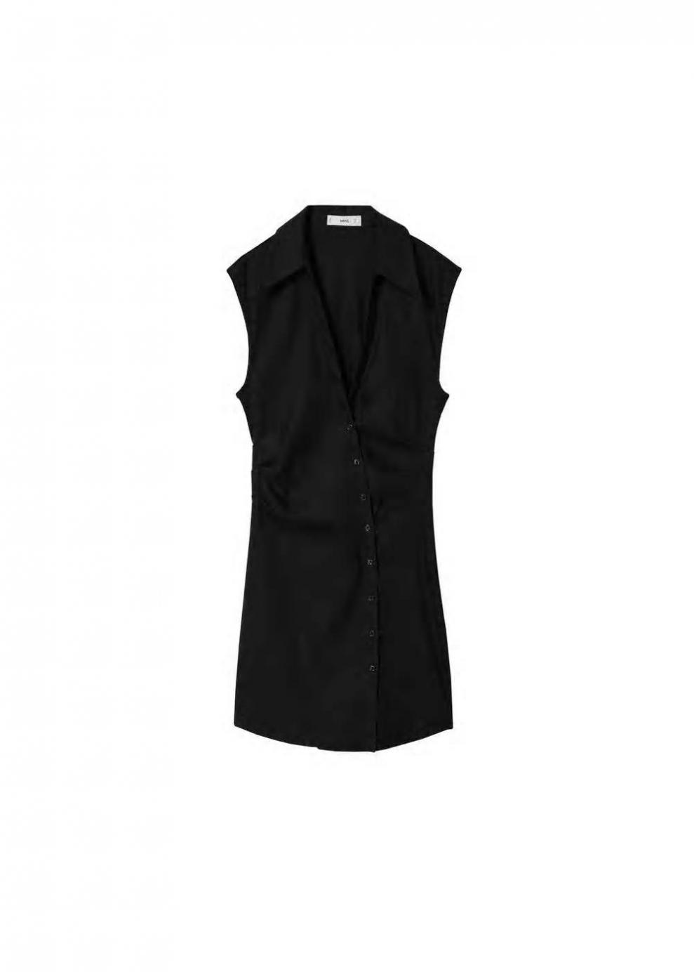 Mujer Vestido camisero lino Negro | Vestidos y monos Mango
