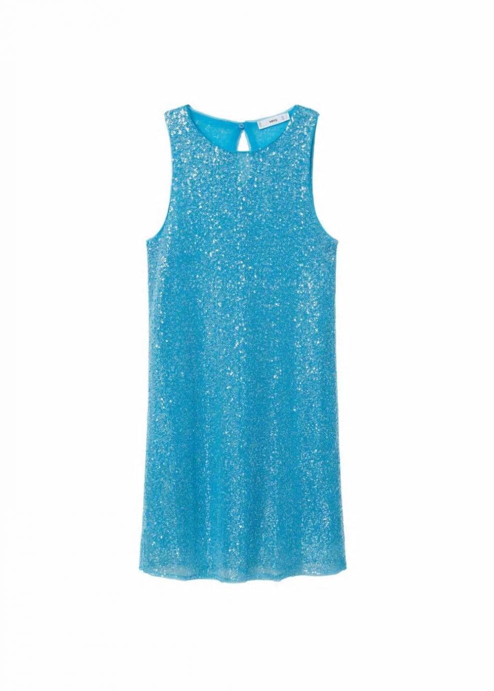 Mujer Vestido apliques lentejuelas Azul | Vestidos y monos Mango