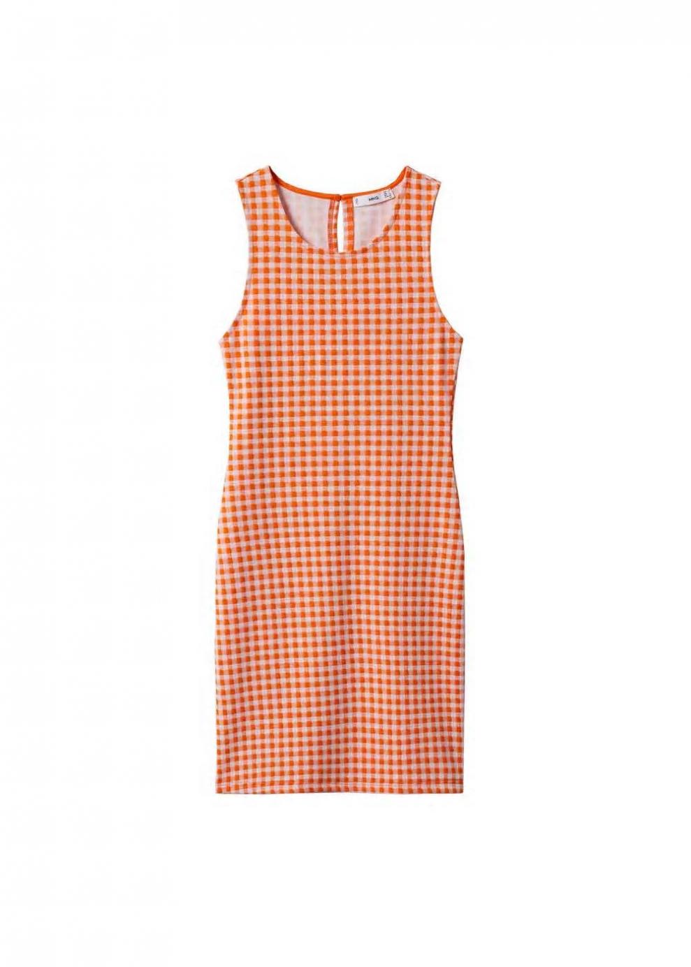 Mujer Vestido cuadros vichy Naranja | Vestidos y monos Mango