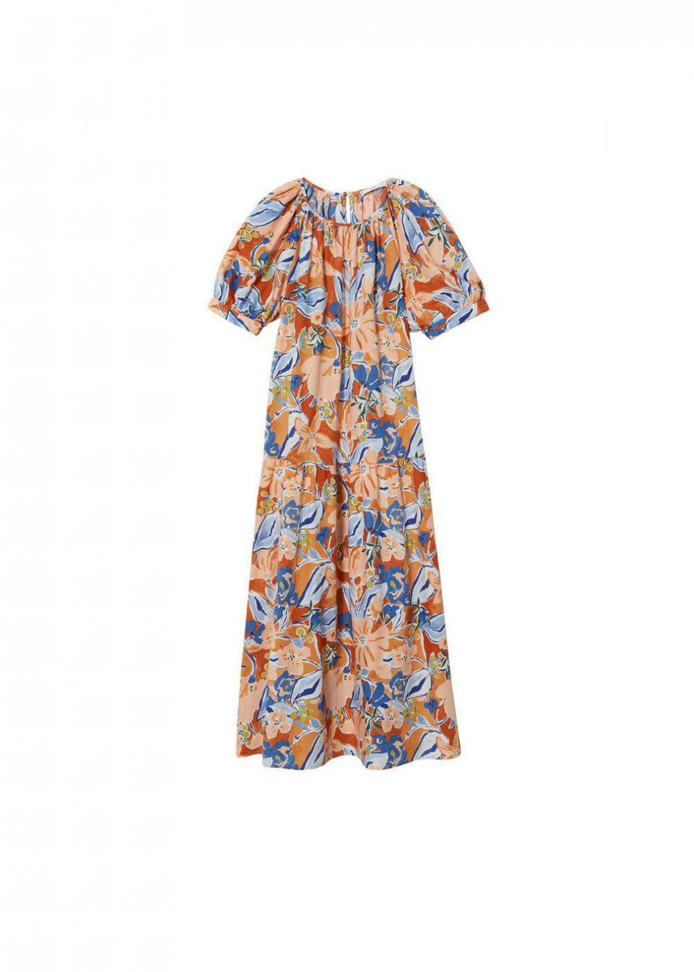 Mujer Vestido estampado manga abullonada Rojo Anaranjado | Vestidos y monos Mango