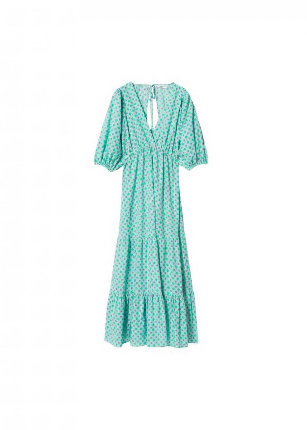 Mujer Vestido fluido estampado Verde Agua | Vestidos y monos Mango